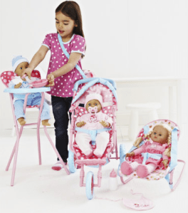 Head on over to the children’s section of any store, and you’ll immediately notice it divided: stuff ‘for boys’ and stuff ‘for girls’. You can probably guess what kind of products are considered boys’ toys or girls’ toys, but if you really need convincing, I’ve created a little sample here. These photos were taken from the Early Learning Centre, not because I’ve got anything against them in particular, but because their site was the first one I came across and I thought it was a good microcosm of the toy world.